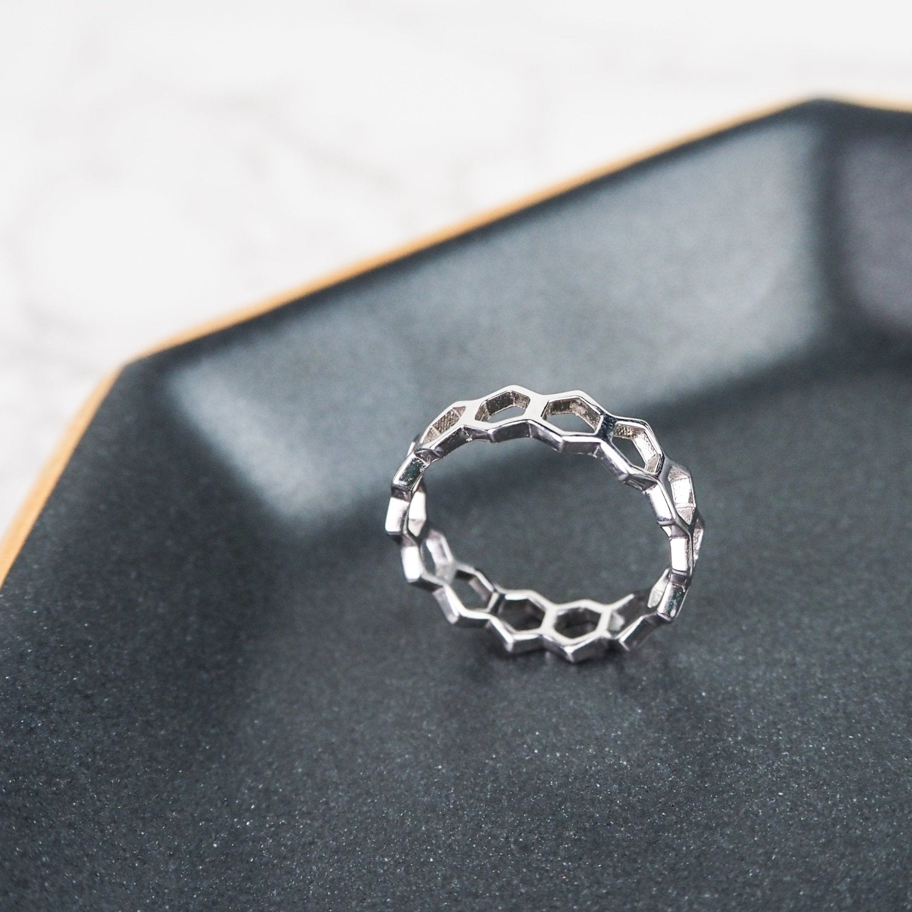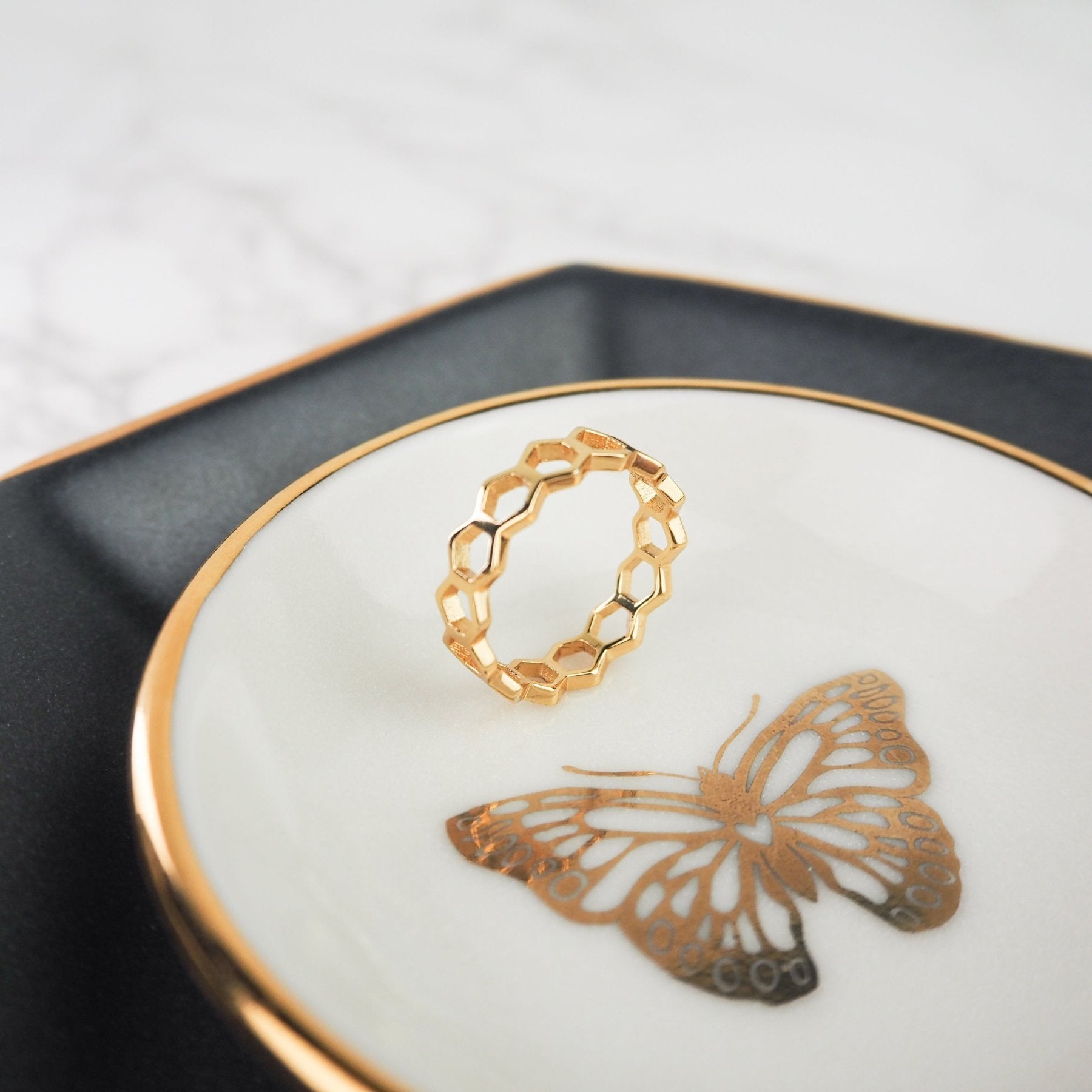 Our Honeycomb Band wraps your finger in a chain of hexagons that reflect the light at every angle. If you're craving a mixed-metal moment, these geometric rings fit together like puzzle pieces (... or, well, honeycomb).